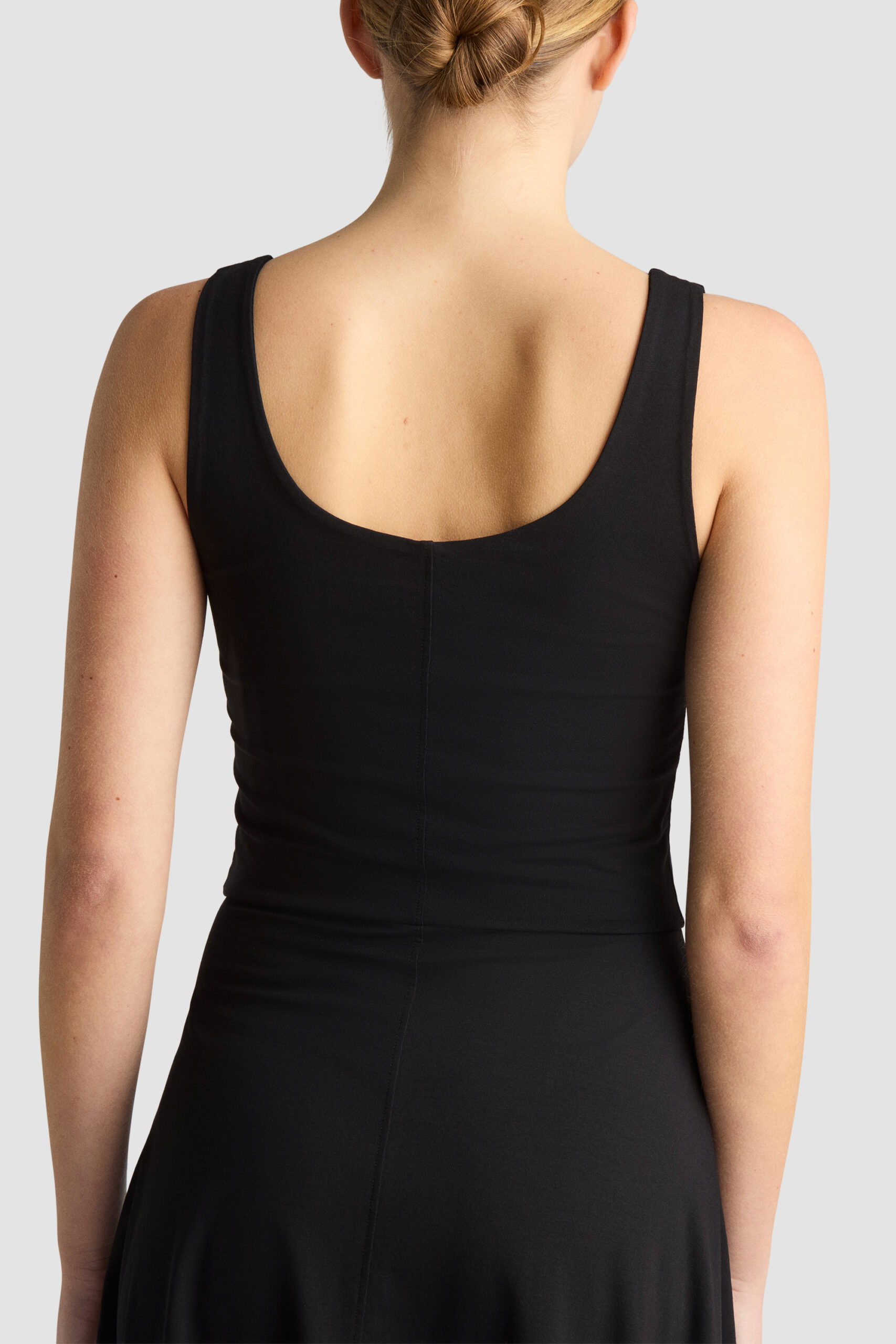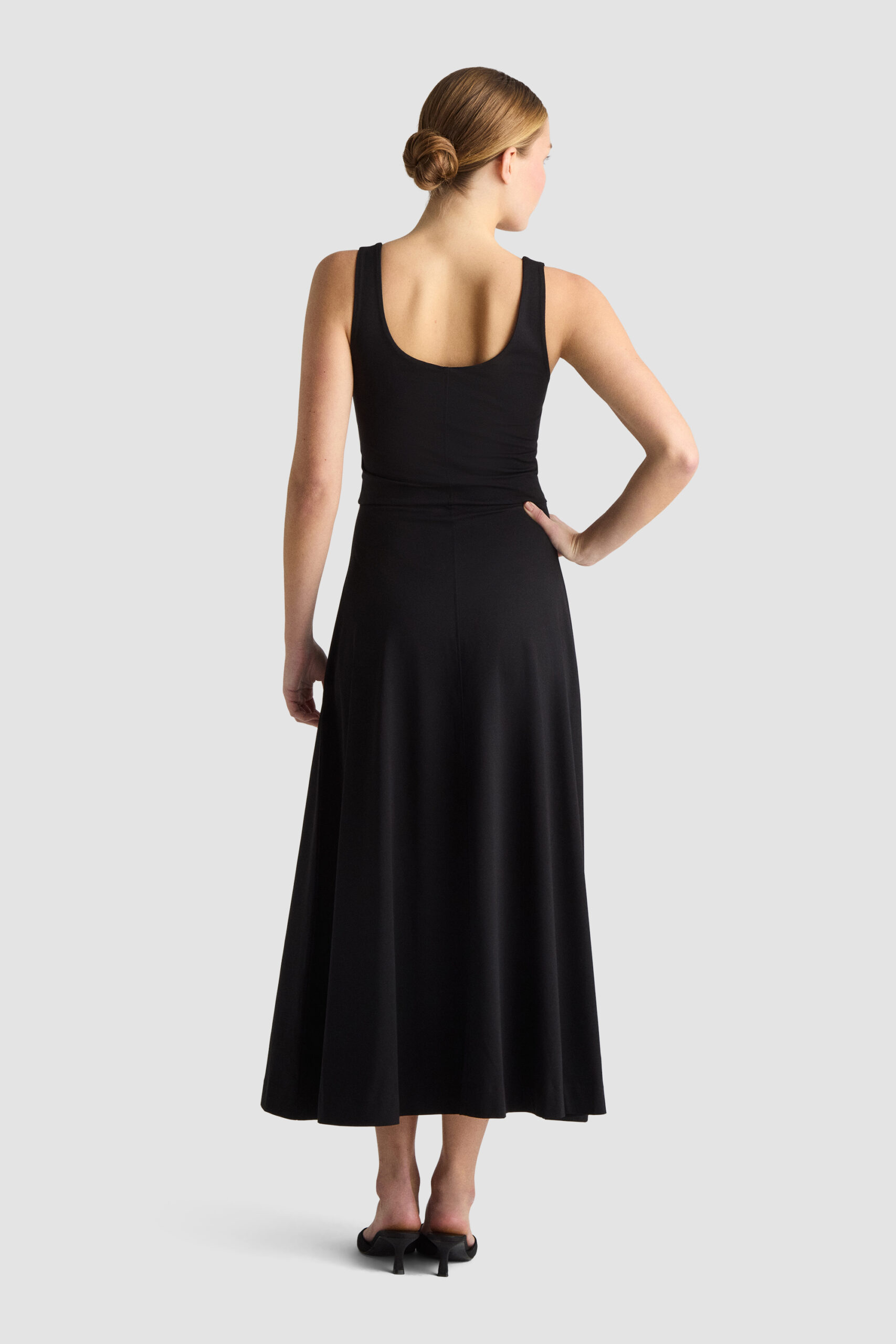 • Babba Dress has a fitted bodice with tank-style straps and a slightly square neckline. It cinches at the waist before flowing into a beautifully flared skirt for an elegant, feminine silhouette.