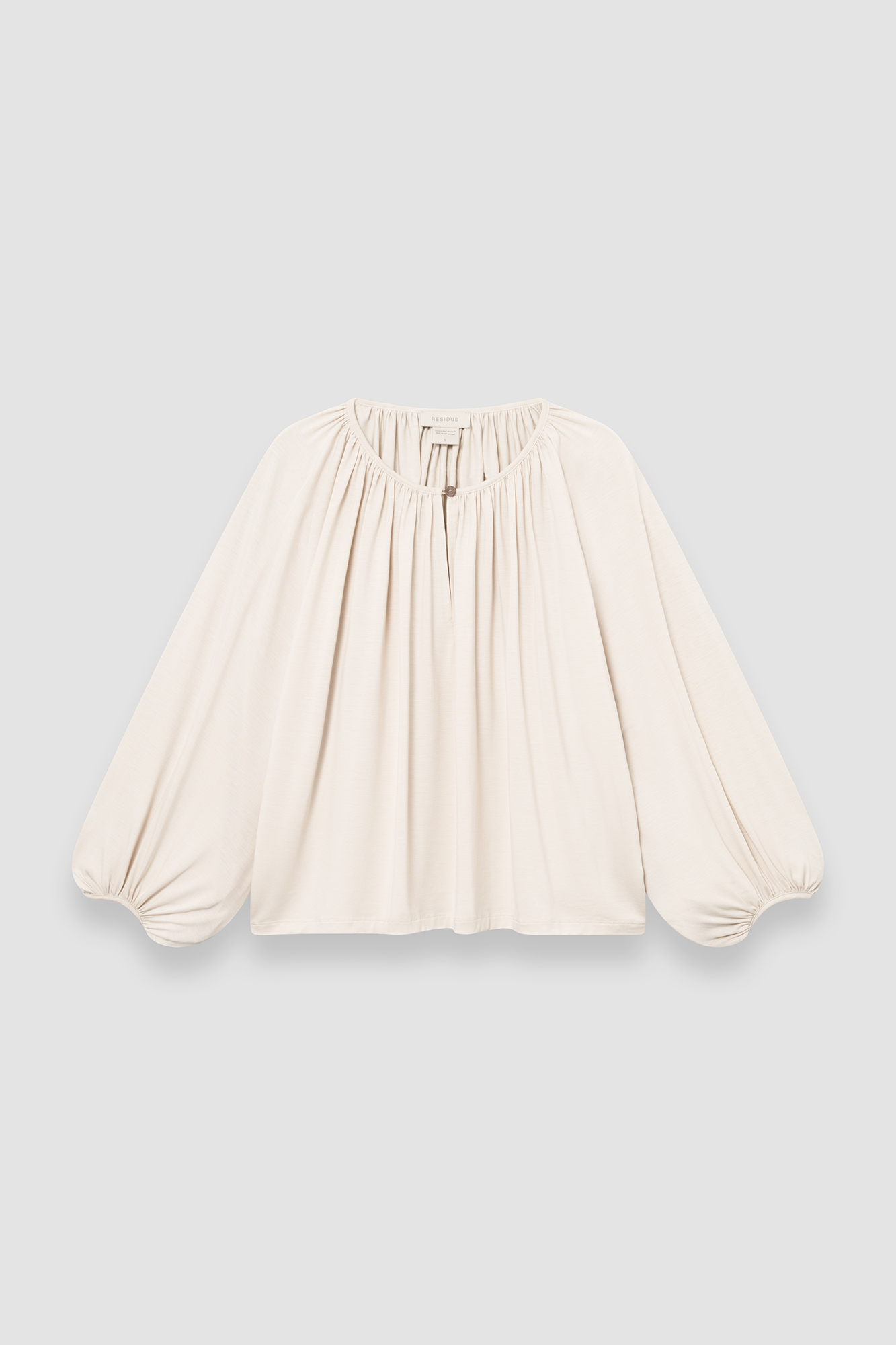 • Chloe Top has a relaxed, boxy fit with long, dramatically wide sleeves that gather softly at the wrists with elastic cuffs. The front keyhole opening with a button closure can be worn open or closed.