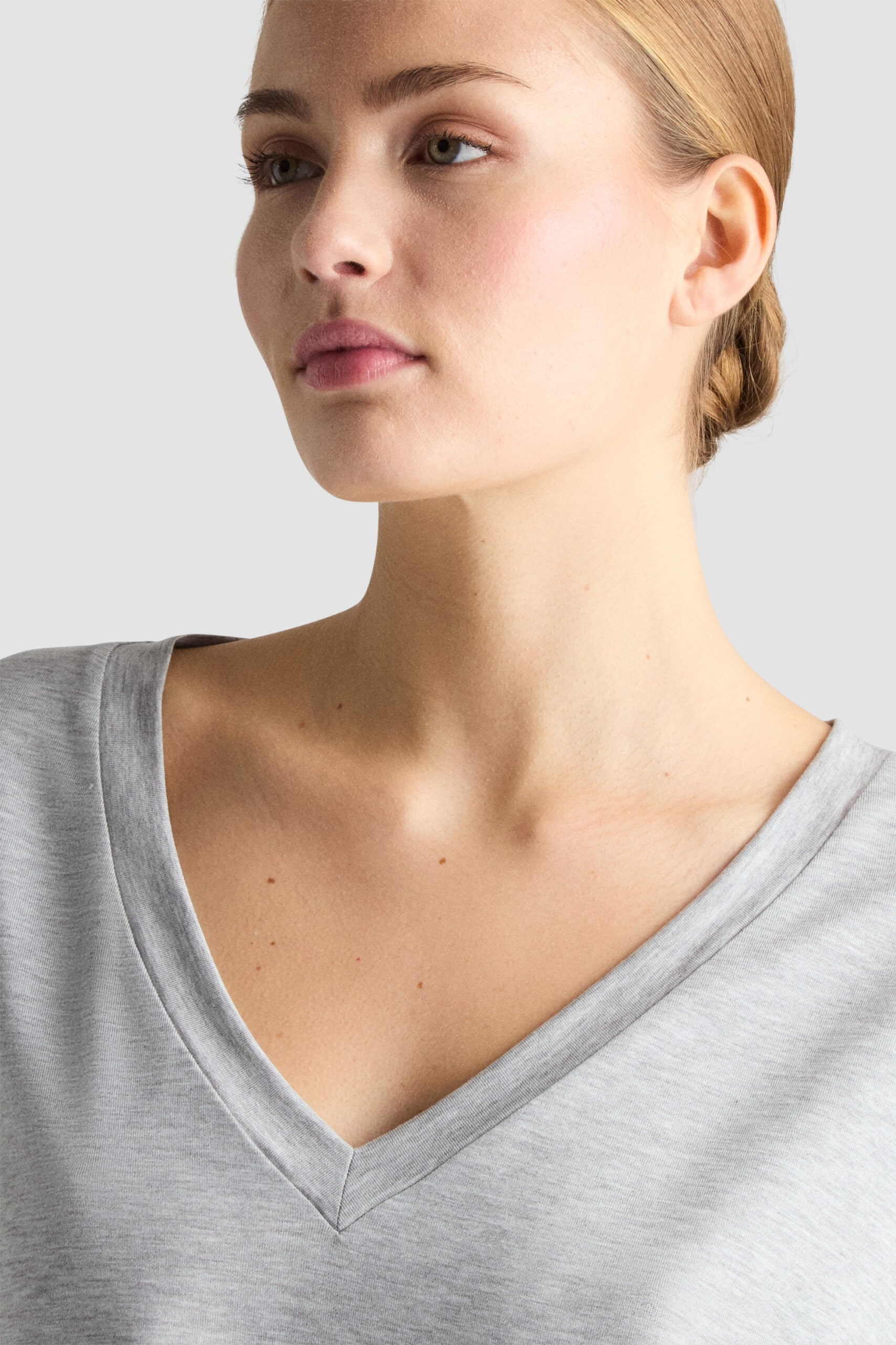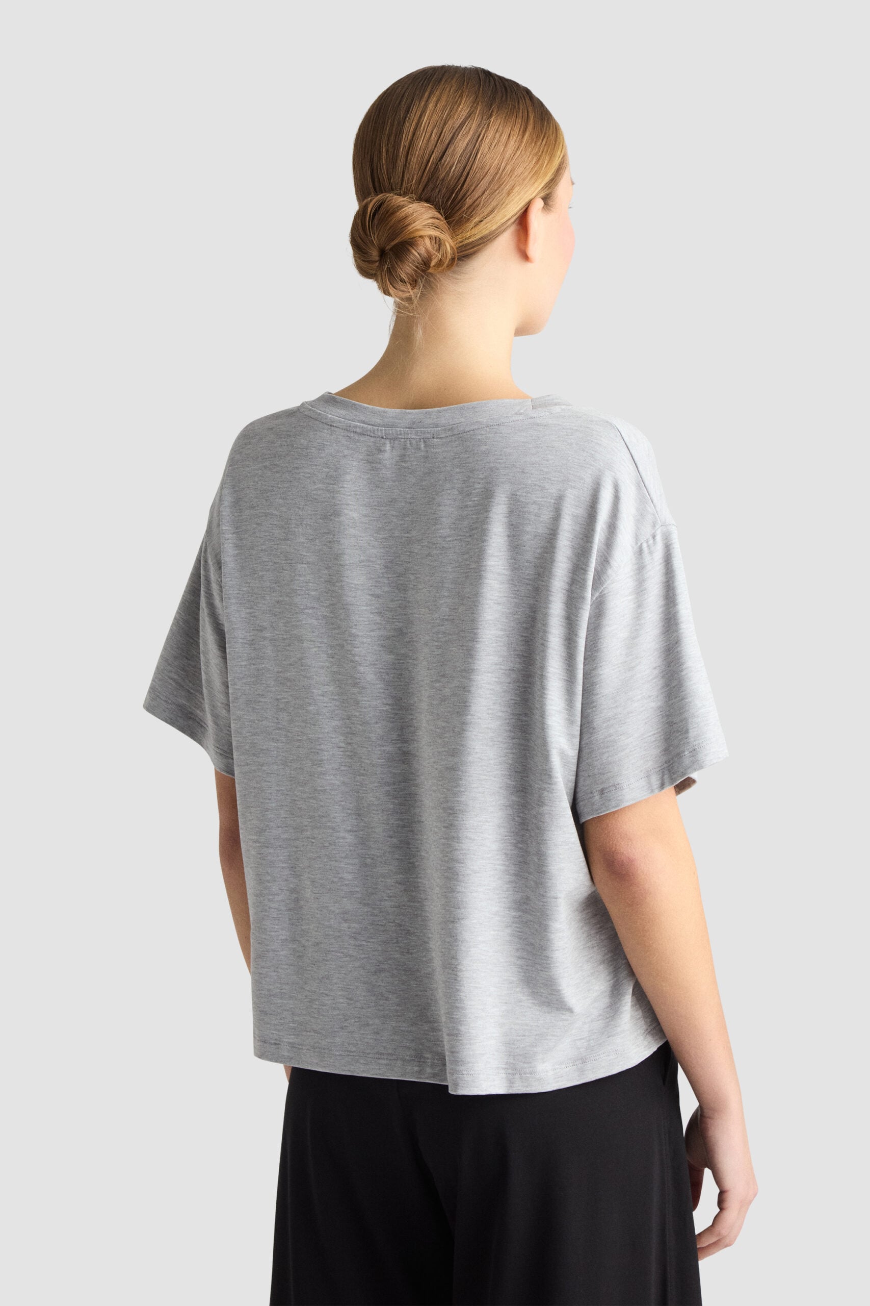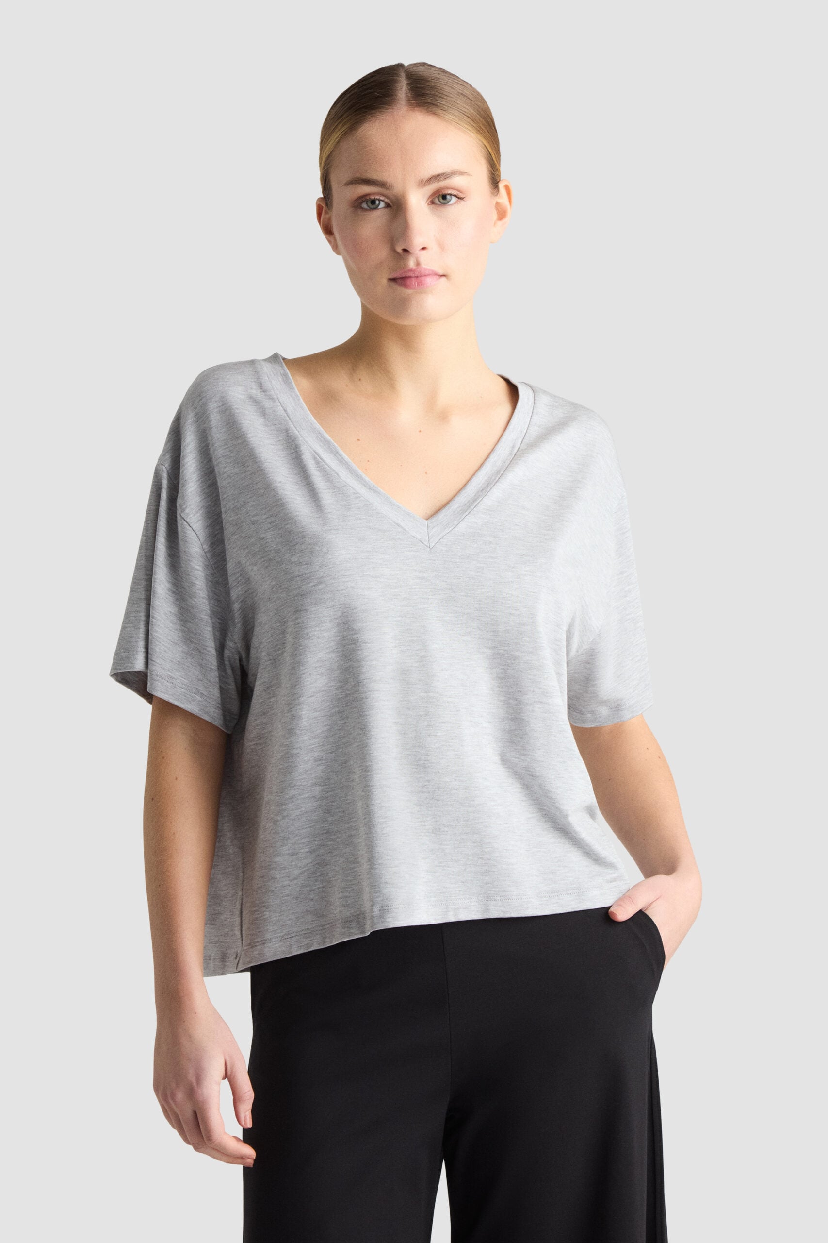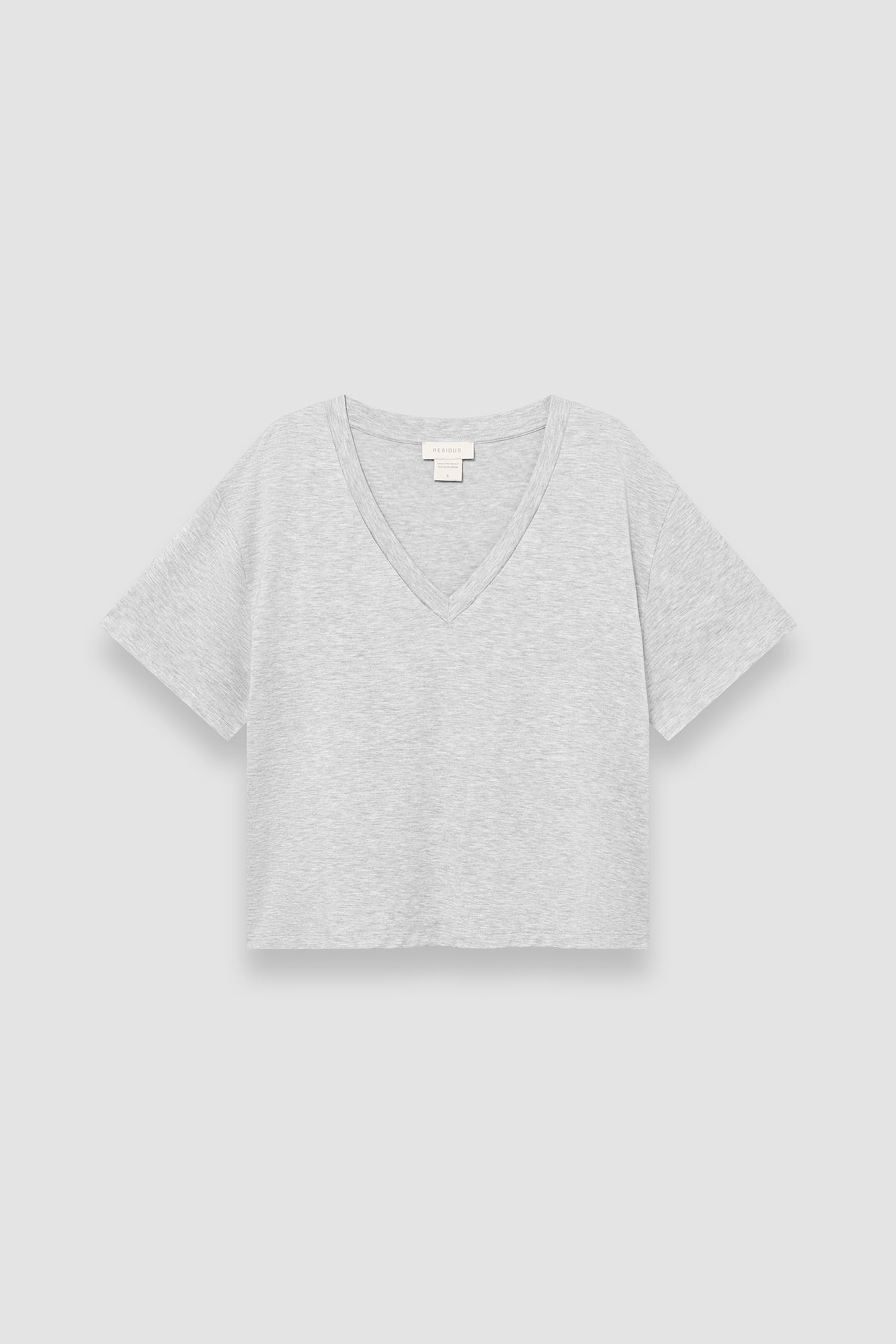 • Sisi is a slightly cropped, wide boxy tee with dropped shoulders and a V-neckline